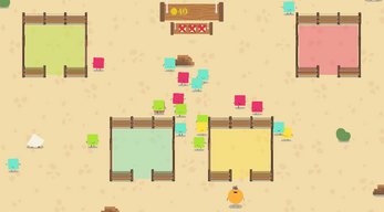 The game looks really cute! The music gives it a very chill ranchy mood, love it ;-) I like the idea for gameplay, but I would have enjoyed a bit more control. It's a bit to hard to make them go the way you want, and sometimes they just go crazy and you can't stop them if you're at the other side of the map. Awesome job guys! Keep it up.